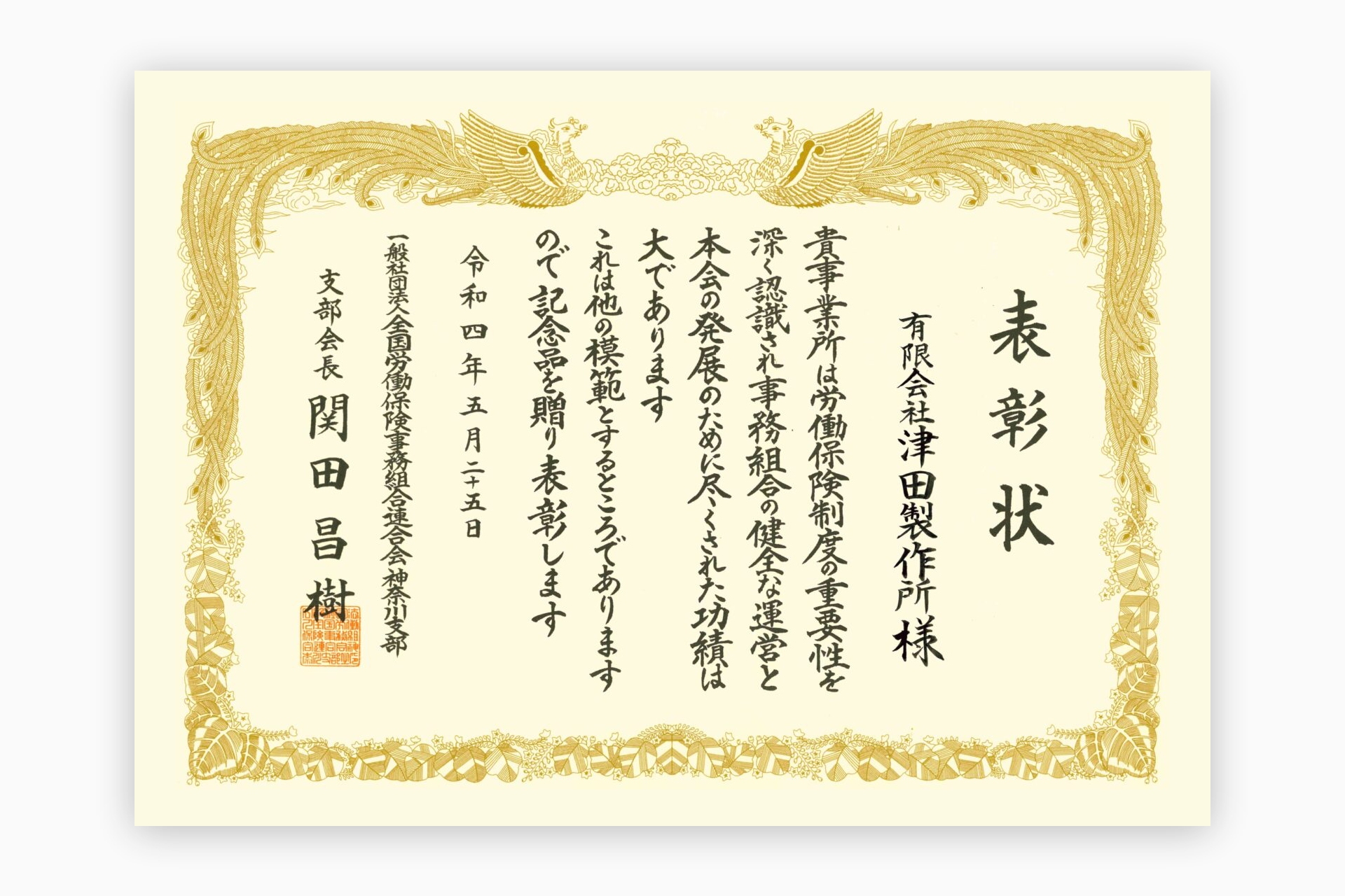 全国労働保険事務組合連合会より優良委託事業所として表彰されました。
