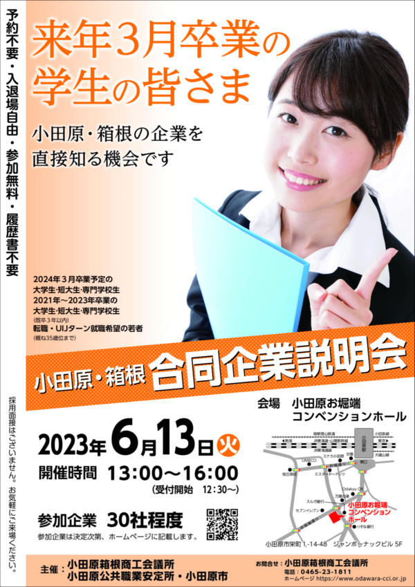 小田原箱根商工会主催の合同企業説明会に参加します。